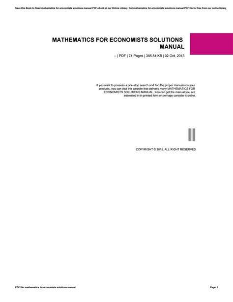 Download online MATHEMATICS FOR ECONOMISTS SOLUTIONS MANUAL mobipocket ManyBooks